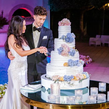 Il taglio della torta avviene nel cuore del giardino, sotto le stelle, offrendo uno scenario suggestivo e curato nei dettagli. Un momento scenografico che aggiunge valore alla giornata, perfetto per concludere l’evento con stile e raffinatezza.