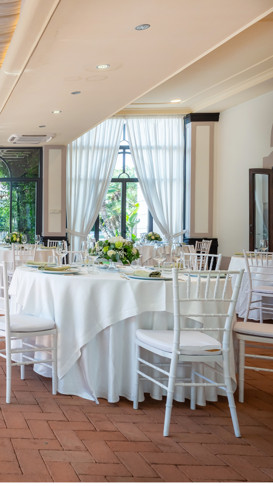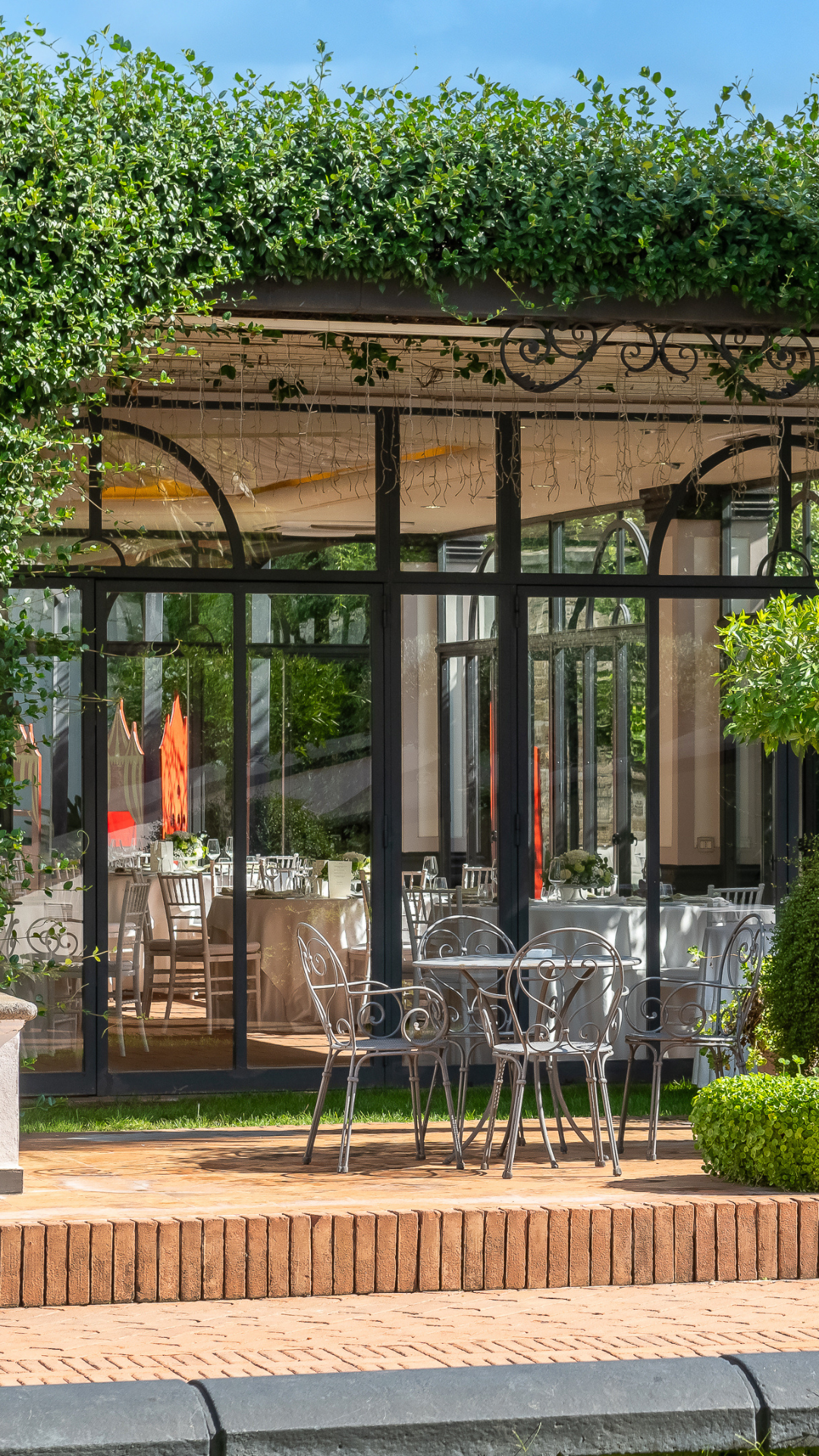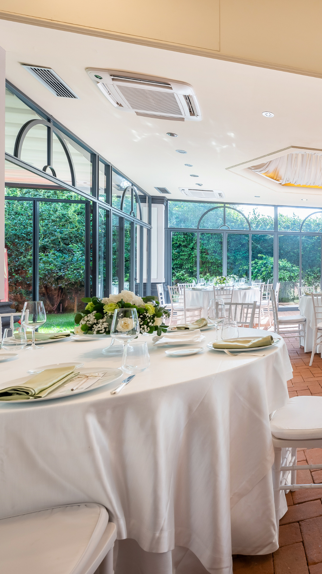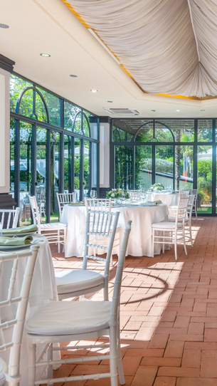 La sala Giardino d’Inverno, con una capienza fino a 100 ospiti, è dotata di ampie vetrate su tutti i lati che assicurano luminosità e un’atmosfera ariosa. Grazie al giardino interno, rappresenta una soluzione elegante e pratica anche in caso di pioggia, offrendo un'alternativa coperta senza rinunciare al contesto naturale e alla continuità dell’evento.